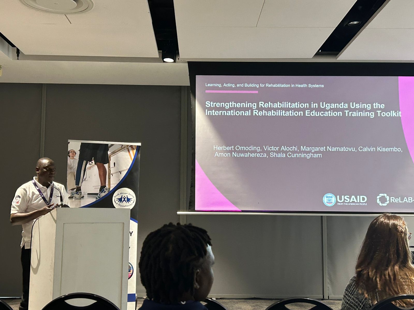 Thanks to the USAID-funded ReLAB-HS activity, rehabilitation professionals p from Uganda attended the congress to share the success of ReLAB-HS workforce development activities in Uganda. The team, including Herbert Omoding, Margaret Namatovu, Calvin Kisembo and Amon Nuwahereza,  presented on the success of using the IRETT – a set of resources that can be integrated into any region’s education, training or regulatory activities that supports workforce development in order to build rehabilitation capacity and improve the quality of rehabilitation care. The IRETT comprises several practical tools, including the Academic Program Reflection Tool (APRT), the Professionalisation and Regulation Reflection Tool (PRTT) and the Clinical Skills Training Tool (CSTT).